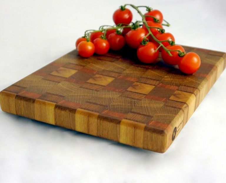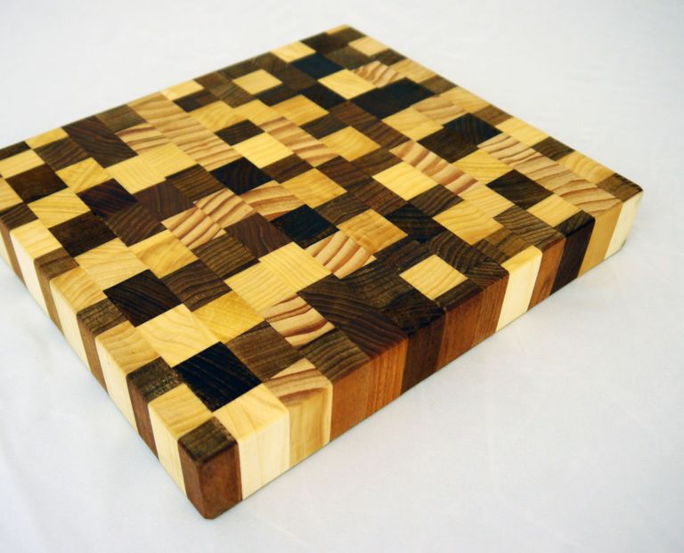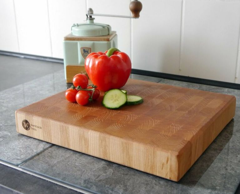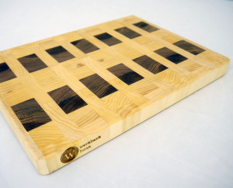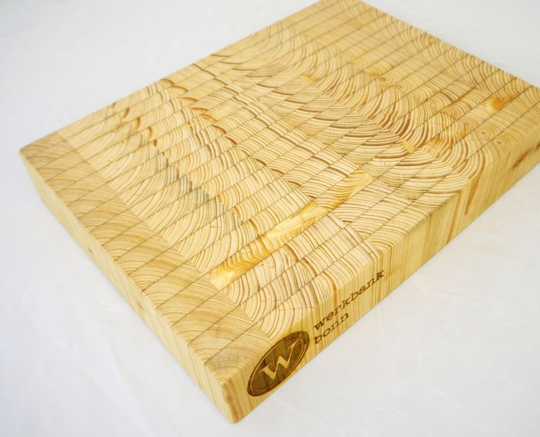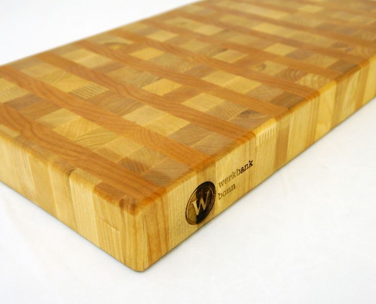 Massives Holzschneidebrett aus Kiefernstirnholz (Regalböden), handgefertigt, ca.-Format: L 380 x B 285 x H 62 mm - Lasergravur auf Anfrage möglich! € 98,00