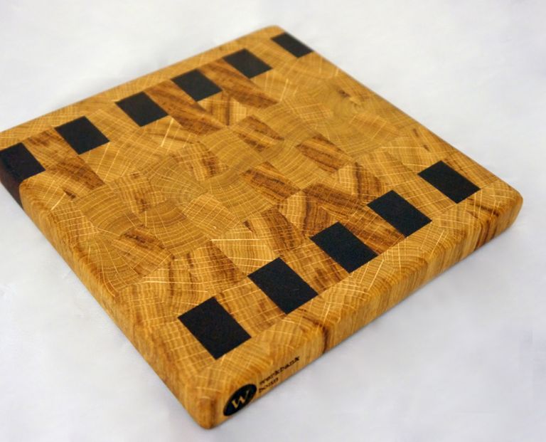 VERKAUFT! - Massives Holzschneidebrett aus Eiche und Ipe (Dielen u.a.), handgefertigt, ca.-Format: L 175 x B 175 x H 26 mm - Lasergravur auf Anfrage möglich!