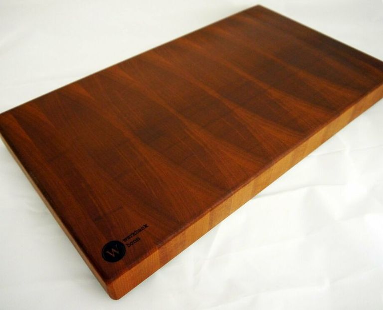 Massives Holzschneidebrett aus Cumarú (Tonkabaum), handgefertigt (aus Terrassendielen), ca.-Format: L 325 x B 260 x H 40 mm, Gewicht ca. 3,6 kg - Lasergravur auf Anfrage möglich!