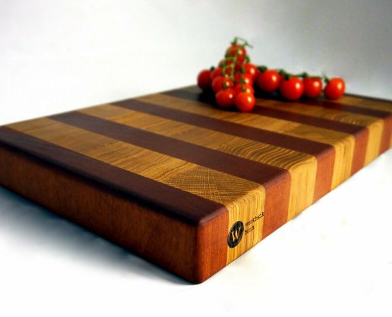 Massives Holzschneidebrett aus Eiche und Mahagoni (Treppenstufen), handgefertigt, ca.-Format: L 450 x B 250 x H 42 mm - Lasergravur auf Anfrage möglich! € 139,00