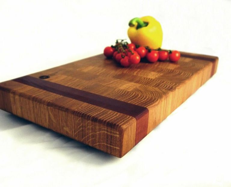 Massives Holzschneidebrett aus Eiche und Bangkirai (Dielen), handgefertigt, ca.-Format: L 245 x B 185 x H 24 mm - Lasergravur auf Anfrage möglich! € 59,00